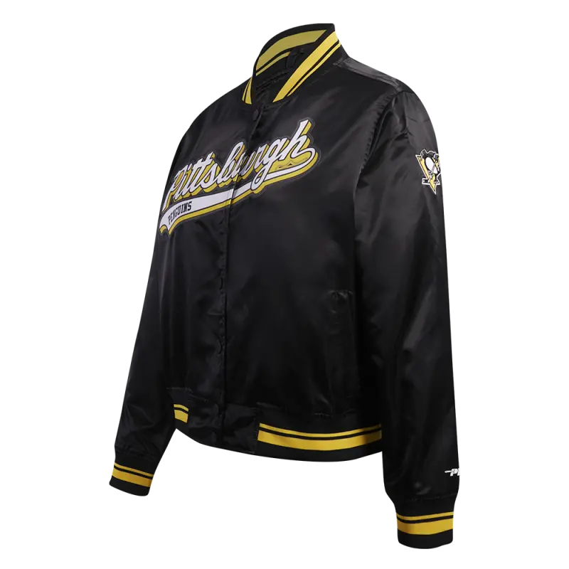 NHL PITTSBURGH PENGUINS SCRIPT TAIL WOMEN’S SATIN JACKET (BLACK\/YELLOW)