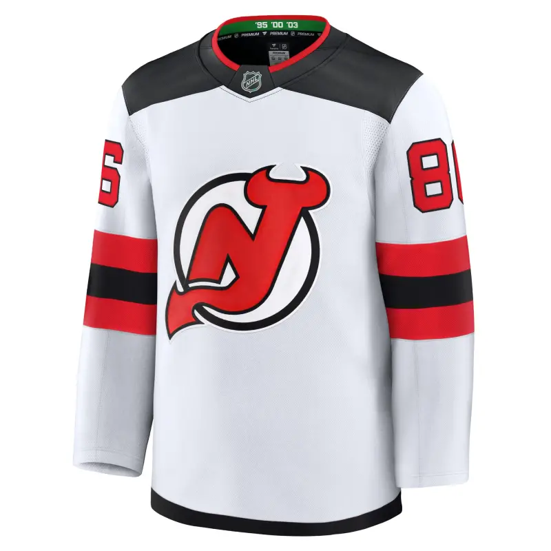 Men’s Fanatics Jack Hughes White New Jersey Devils Away Premium Jersey