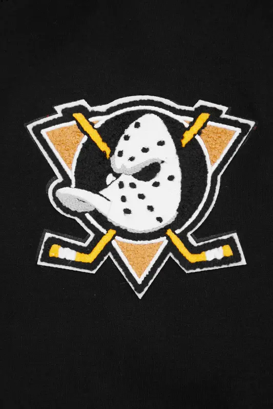 NHL ANAHEIM DUCKS CLASSIC CHENILLE MEN’S DOUBLE KNIT PULLOVER HOODIE (BLACK)