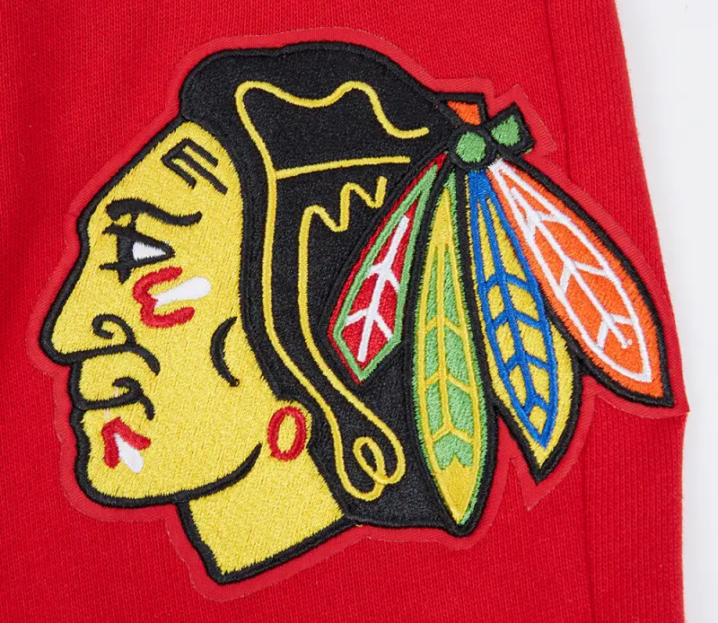 NHL CHICAGO BLACKHAWKS SCRIPT TAIL MEN’S RIB FLEECE SWEATPANT (RED\/BLACK)